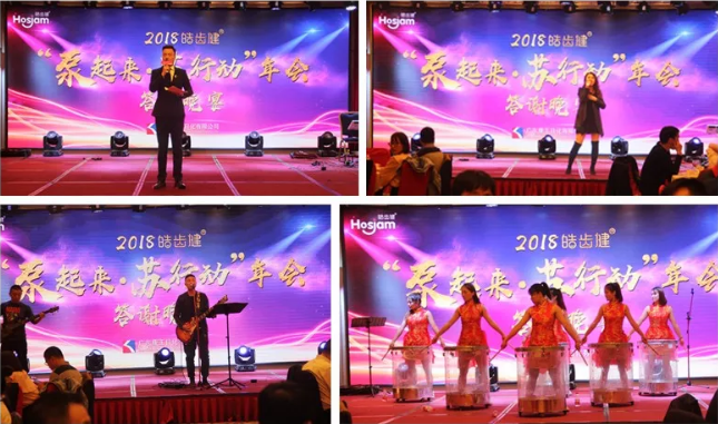 晚上19:00,為回饋廣大客戶一直以來對(duì)皓齒健的支持與陪伴,我們特地準(zhǔn)備了一場(chǎng)美輪美奐的視聽大宴。流行歌曲,民族舞蹈,專業(yè)樂隊(duì)?wèi)?yīng)有盡有,現(xiàn)場(chǎng)氣氛一度被推向高潮!